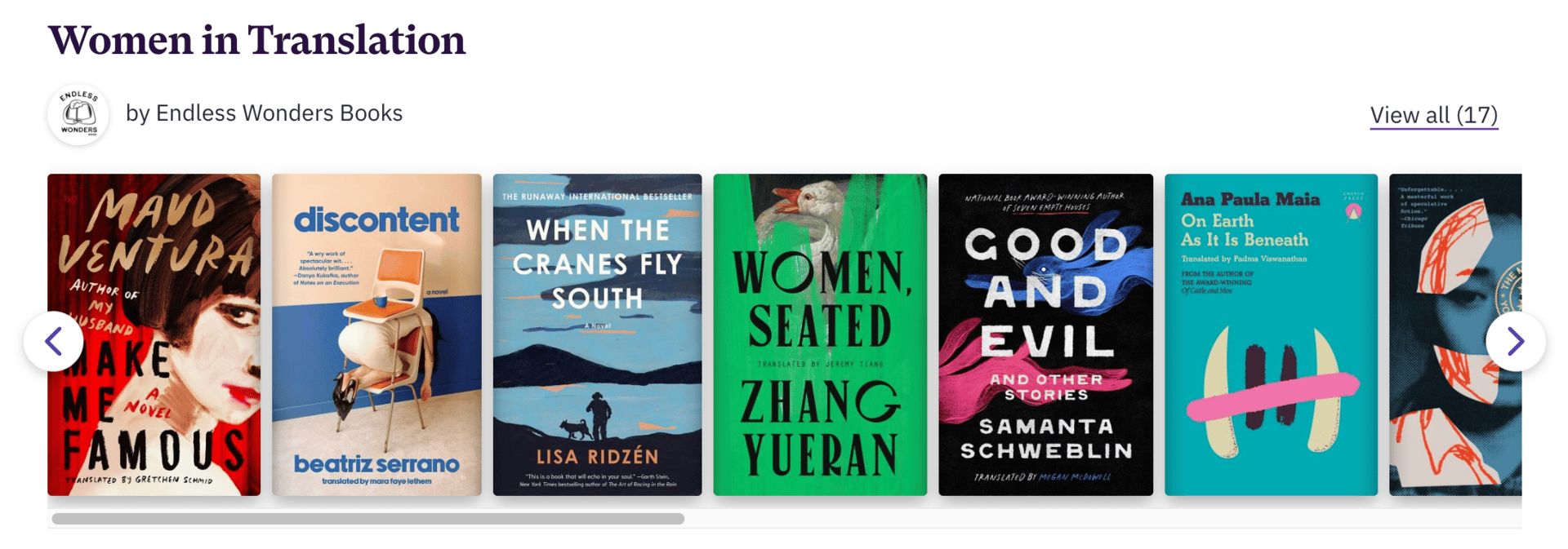 Screenshot of our Women in Translation list on our Bookshop.org page.