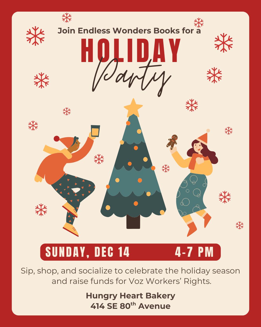 Sunday, December 14: Holiday Party, 4-7pm | Hungry Heart | 414 SE 80th Ave